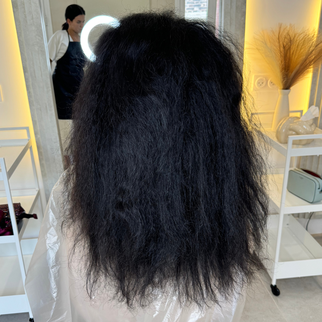 Je pensais qu’il n’y avait que le lisseur ou le défrisage pour avoir les cheveux lisses. Je ne savais même pas qu’un soin pouvait donner ce résultat, sans formol, sans chimie agressive. C’est doux, ça sent bon, et surtout mes cheveux sont en meilleure santé qu’avant.