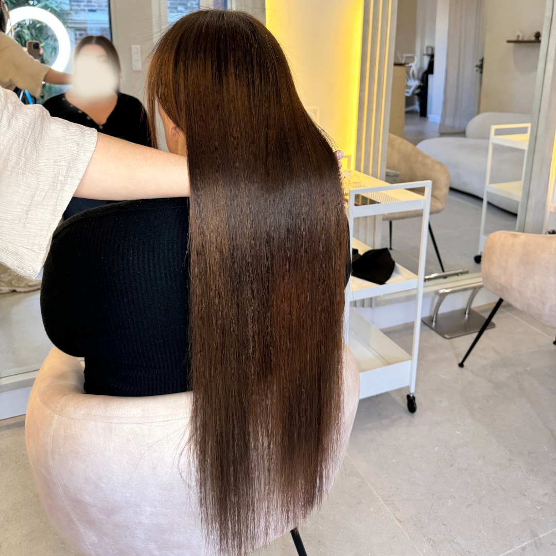 J’ai arrêté le lisseur depuis que j’ai fait le lissage CHS. Je ne me rendais pas compte à quel point les plaques abîmaient mes cheveux, surtout sur les longueurs. Aujourd’hui, mes cheveux sont lisses naturellement, sans chaleur, sans dégâts.
